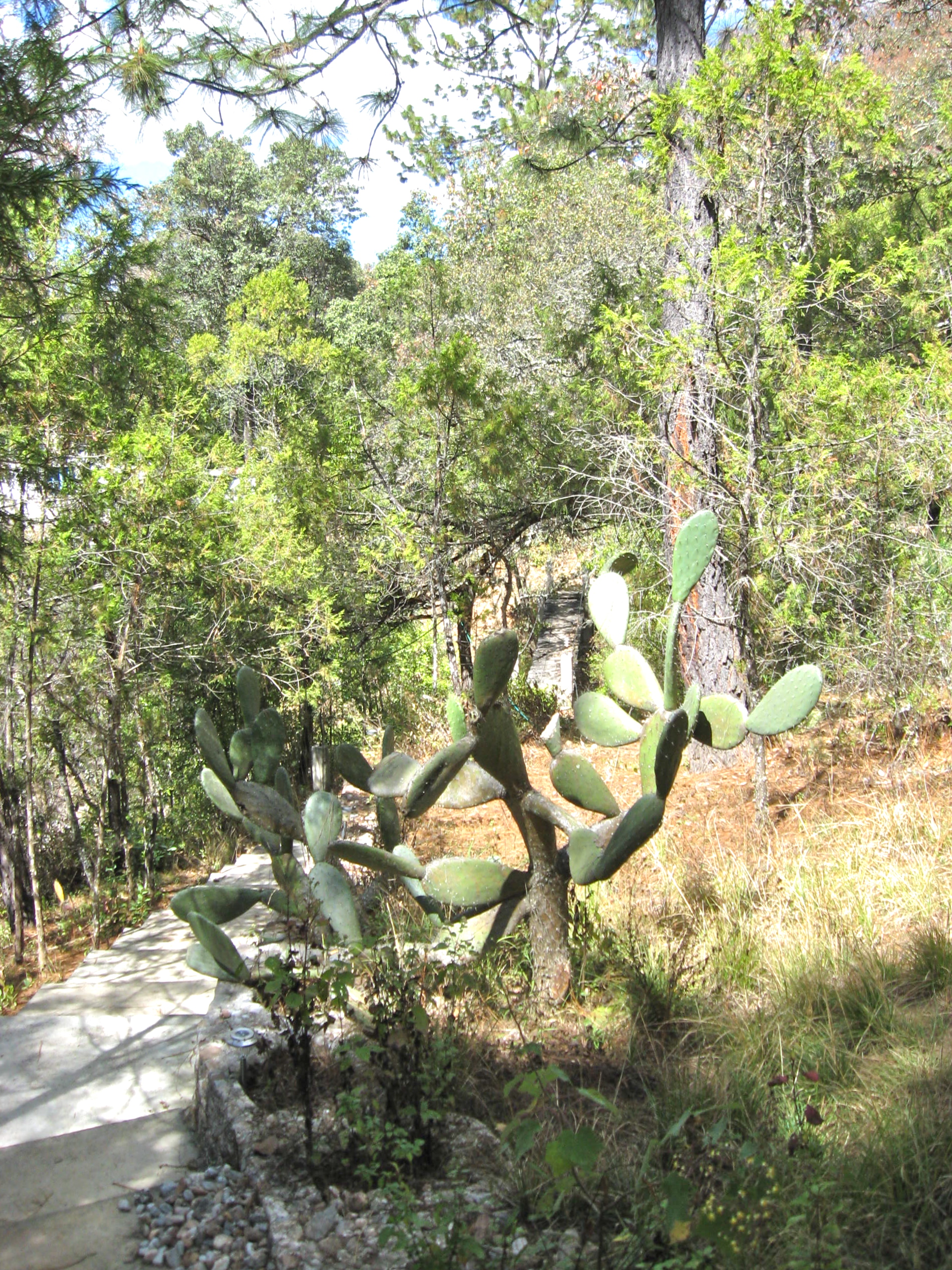 Pat offers me one the use one of the three houses (stone cabins, one might call them). Stewart not having arrived, Pat sends the girls up the mountain to find them. I go along, exercising my bad ankle on steep paths through pine, cedar and small, tough Mexican oak trees. We find Stewart on the brow of a hill, in text conversation with, among others, his brother, my friend Steve. Stewart, somewhat to my surprise, hugs me, and there follows a one-hour educational hike filled with history, geology, botany zoology, and the sociology of the region.